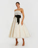 White Strapless Embellished Midi Dress with Velvet Bow